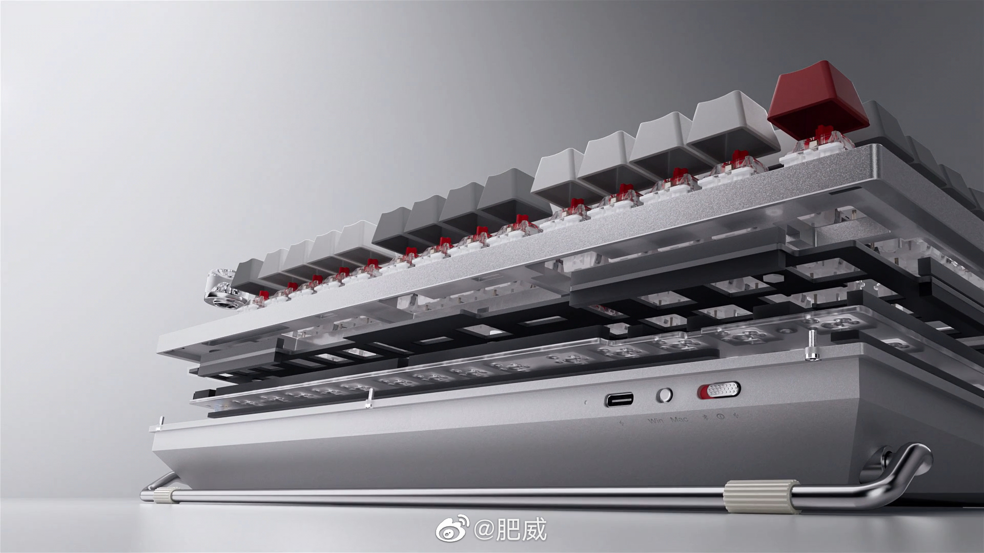 一加键盘,蓝牙/有线双模,透明音量旋钮?带有Win/Mac切换开关。说是高精度CNC铝坨坨