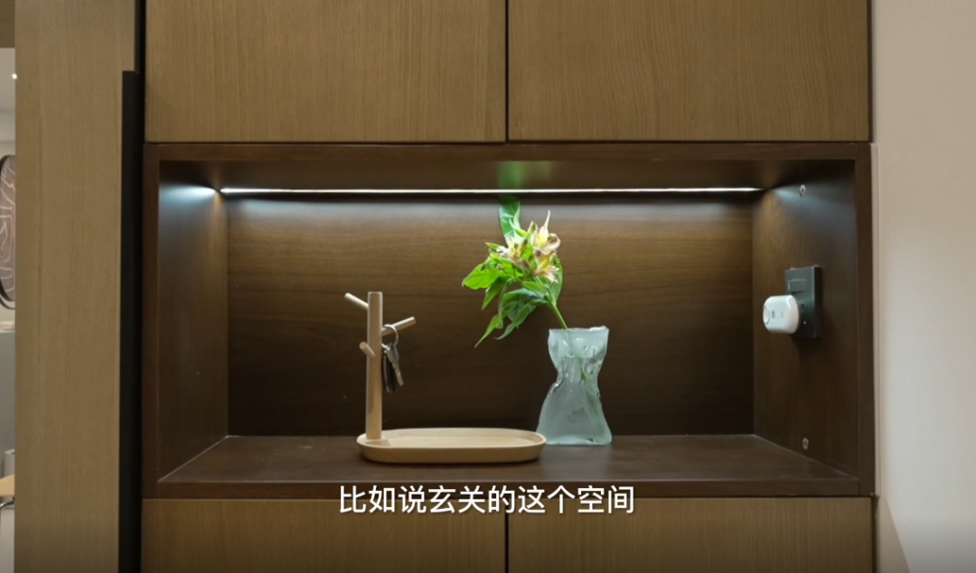 例如玄关,除了需要控制客餐厅光源的开关外,还需要一个五孔插座,方便给出门常带的便携电器充电,比如充电宝、智能手环等。