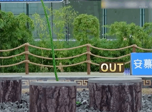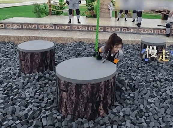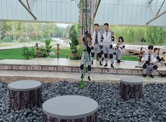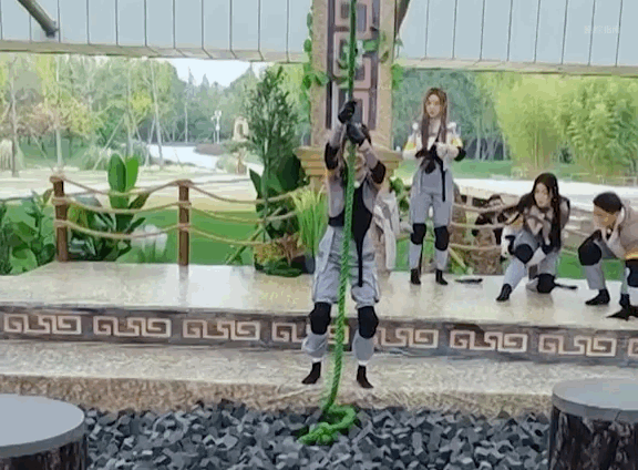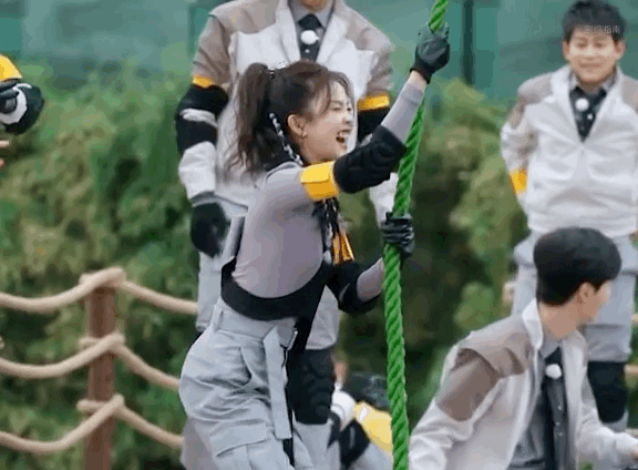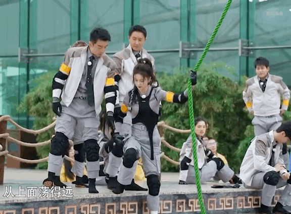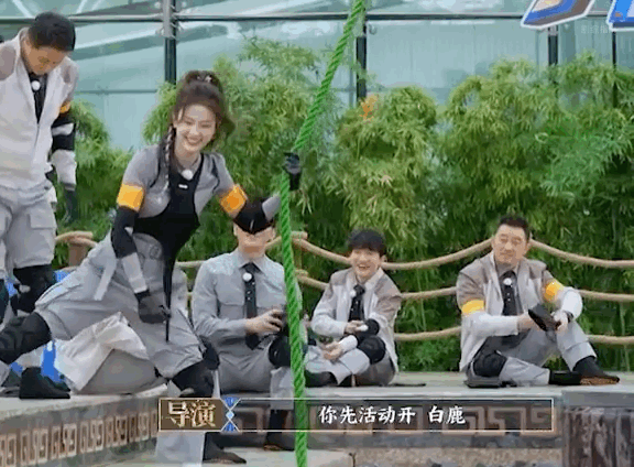 白鹿玩游戏开始即结束,这根绳子仿佛打开了白鹿笑点开关,不管能不能荡过去先大笑一下,摔下去是因为笑没劲了吧