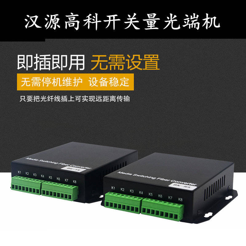 HY-8K(Z)开关量光端机是汉源高科自主研发创新,专门为数字IO开关量在单模或多模光纤上远距离、无失真点对点传输而设计。设备将远端现场的各种串口设备如传感器、探测器、烟感探头、LED灯光控制、遥控遥测遥信自动化装置、仪器仪表及测量计量设备、IO控制终端、控制报警器、红外补光等设备输入输出的数字IO开关量接口信号通过光纤与中心的计算机、工控机、PLC、POS机、中控系统、数据采集或控制设备、计量计费系统、SCADA(数据采集及监控)、机器视觉及运动控制系统等主机或中央控制系统相连,这样大大方便了中心主机及软件系统同时与多台数字IO开关量设备或装置完成数据通信、采集和控制。数字IO开关量输入接口支持保护、隔离器及去抖滤波功能。支持可控硅、固态继电器、信号继电器及大电流功率继电器等等数字IO开关量输出接口,支持交流、直流触点输出。内置15KV静电保护器,可有效防止设备之间由于地不平衡引起的串口损坏及静电击穿。内置的高性能的两级粗细抗雷击保护装置,支持共模和差模两种保护模式。高达10KA通流量的第一级粗保护电路能够有效的降低和抑制雷电、浪涌大信号冲击;第二级精细保护电路能够有效去除小信号残留电压冲击及干扰信号。所有保护电路都采用高可靠、低残压、低寄生电容及快速响应保护时间的防雷器件,因而更有效的保护了数字IO开关量通信接口免受雷电及浪涌信号冲击而损坏,并且不会引起信号畸变和传输带宽下降。