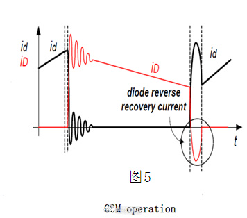4、输出整流二极管Ds会产生反向浪涌电流。二极管在正向导通时PN结内的电荷积累,二极管加反向电压时积累电荷将消失并产生反向电流。因为开关电流需经二极管整 流,二极管由导通转变为截止的时间很短,在短时间内要让储存电荷消失就产生了反向的浪涌电流。由于直流输出线路中的分布电容,分布电感,浪涌引起了高频衰减振荡,这是一种差模噪声。