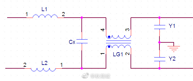 1、在交流电输入端加电源滤波器,滤波器的电路图形如下图。其中L1,L2,Cx用于抑制差模噪声,Cx一般对低频段(150K—数M之间)的EMI防制有效,一般而言Cx越大,EMI抑制效果越好(但价格越高)。如Cx的值在0.22uF以上(包含0.22uF),安规规定必须要有洩放电阻。LG1,Y1,Y2是抑制共模噪声,其中LG1线圈数越多(线径相对细一些),EMI防制效果越好,但温升可能会高。Y-CAP会影响EMI特性,一般而言越大越好,但须考虑漏电流和价格问题,漏电流必须符合安规要求。