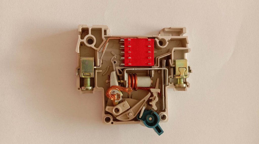 空气开关的整体结构其实还是比较简单的,主要由五部分构成,即灭弧装置,脱扣机构,传动装置和保护装置,其中脱扣机构又由两部分组成,双金属片脱扣器和电磁脱扣器。在正常情况下,电流会先流经电磁线圈,再经过双金属片,最后流出空气开关。当电路出现问题时,比如发生短路,此时空气开关中的电流会大幅增加,这就会导致电磁线圈中的磁场增大,于是电磁脱扣器产生吸力将连接杆吸合并撞击杠杆,于是搭扣与锁扣脱开,电源就被切断了。