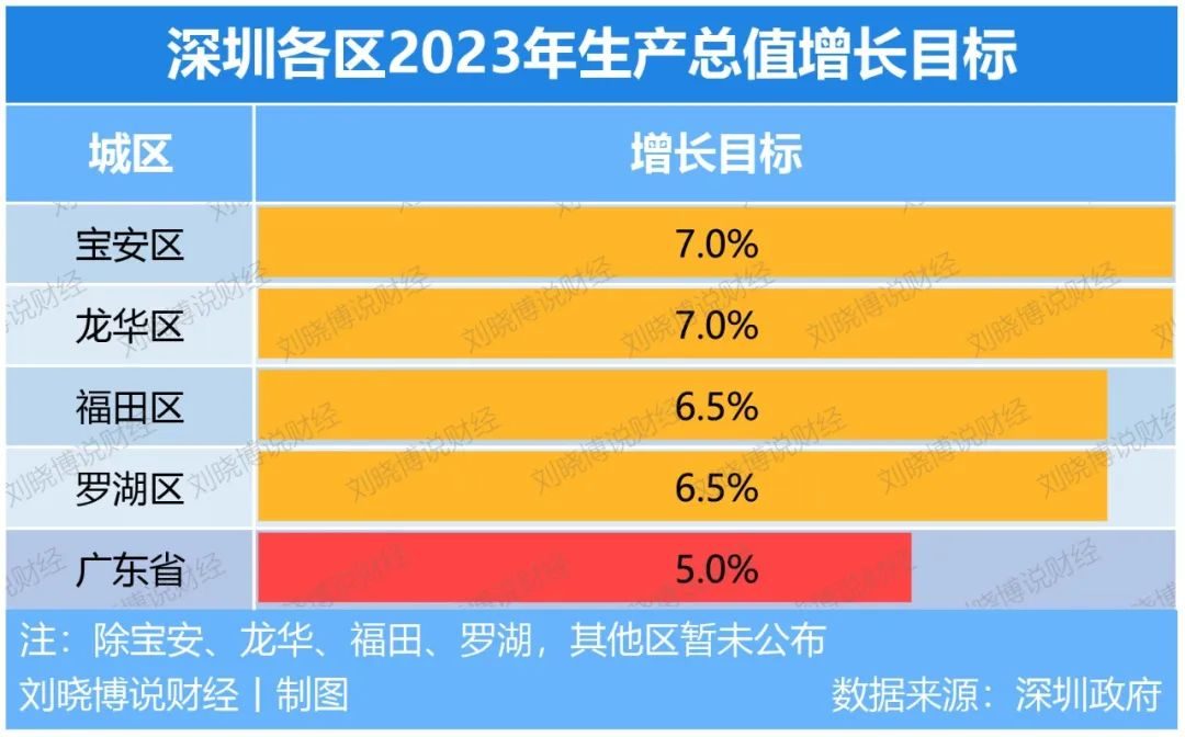 增速均在6.5%以上意味着什么?对于2023年中国经济增长预测值,业界普遍认为会在5.5%左右,2023年广东锁定经济增速5%以上,深圳作为全省经济“领头羊”,城区增速目标的公布,可以说是对市场信心的一次提振。