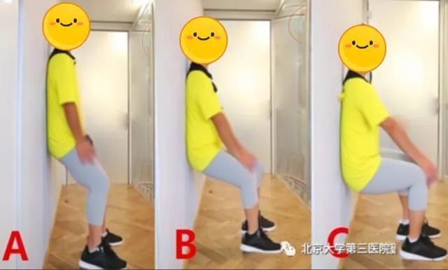 A 浅蹲:角度约在120度以上,适合膝盖疼痛明显、长时间卧床肌肉力量差的人群。