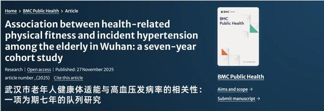 ①Association between health-related physical fitness and incident hypertension among the elderly in Wuhan: a seven-year cohort study. BMC Public Health. 2025 Nov 27.